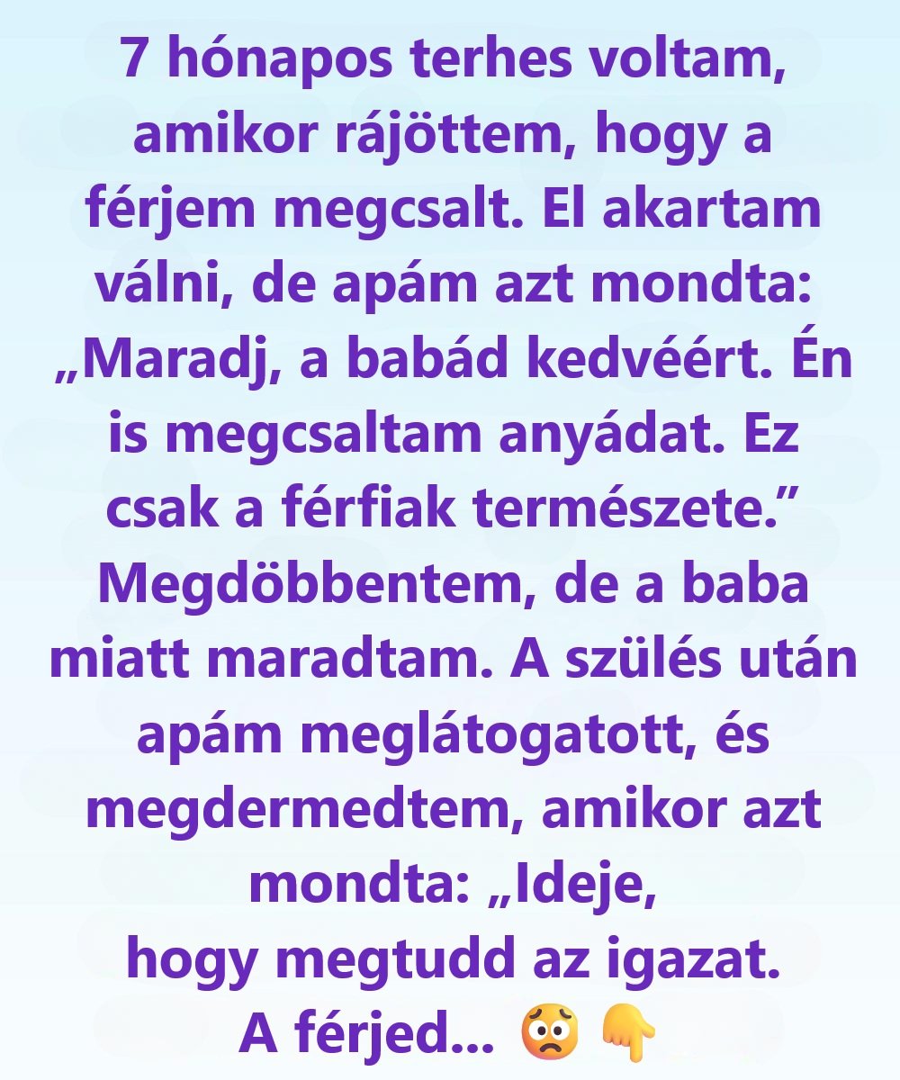 „Én is megcsaltam anyádat, amikor terhes volt”, mondta halkan. „Ez… férfi dolog. Nem jelent semmit.”
