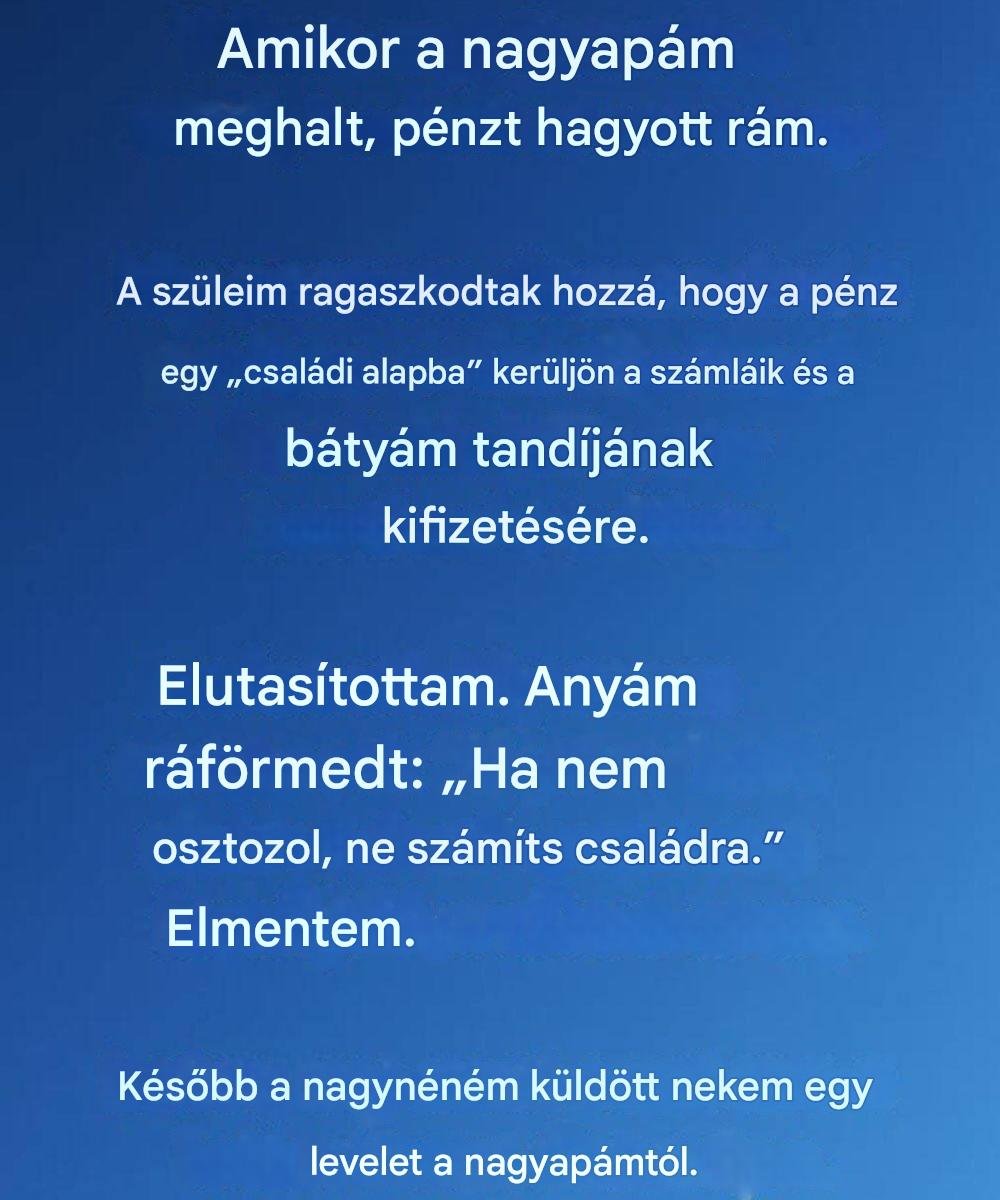 Amikor a nagyapám meghalt, megtudtam, hogy pénzt hagyott rám a végrendeletében.