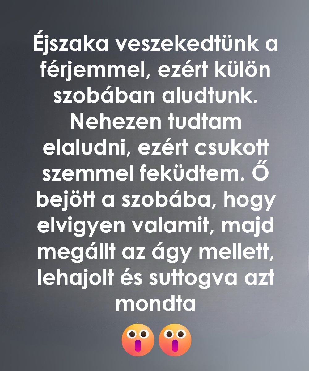 Az éjszaka csak telt, a csönd szinte kézzelfoghatóvá vált. Éppen kezdtem volna elaludni, amikor meghallottam az ajtó halk nyikorgását. Megszaporázódott a szívverésem, ahogy halk lépések közeledtek. Ő volt az, a férjem, szó nélkül megállt mellettem. Olyan közel jött, hogy a jelenlétét szinte érezni lehetett. Visszatartottam a lélegzetem, nem tudtam, most újra elmegy-e, vagy végre közelebb lép hozzám.