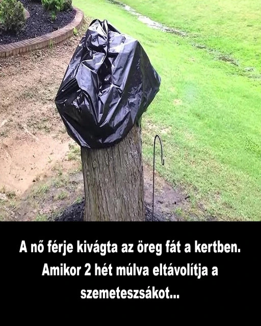 A nő férje kivágta az öreg fát a kertben. Amikor 2 hét múlva eltávolítja a szemeteszsákot…