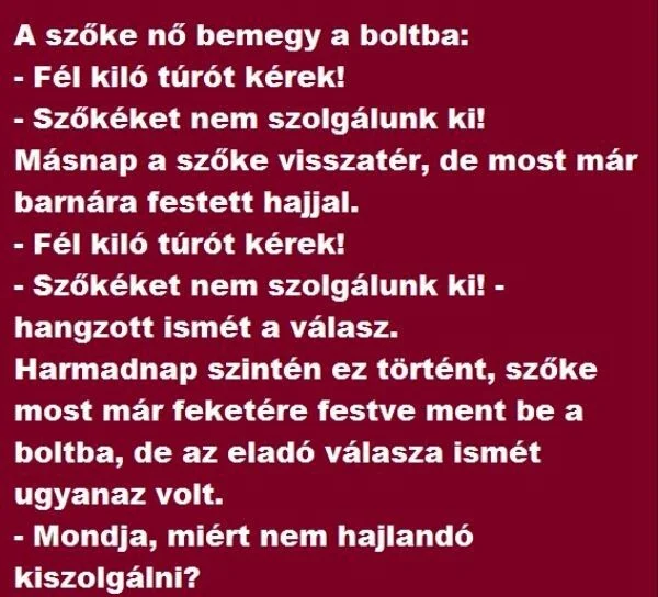 “Szőkéket nem szolgálunk ki!” -hangzik az eladó válasza.