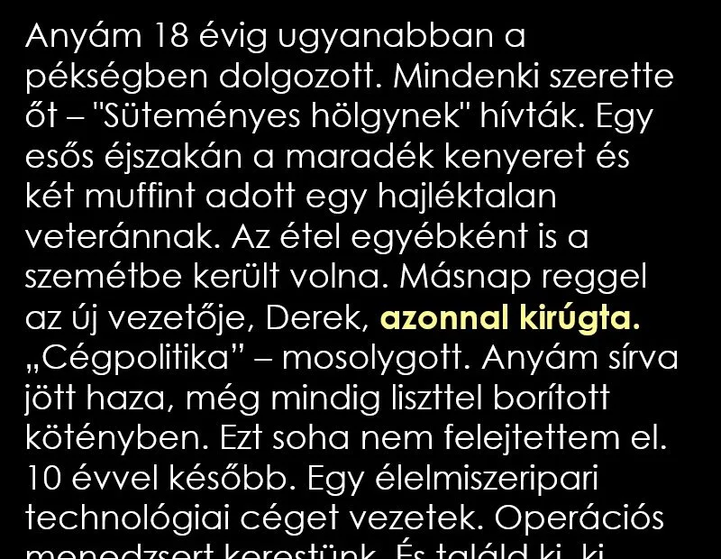 Egy esős estén, záráskor, egy hajléktalan veteránt látott az ajtó előtt. A ruhája csuromvíz volt, az arca fáradt, a tekintete elveszett. Anyám nem gondolkodott: összeszedte a nap végén megmaradt süteményeket — amelyeket egyébként kidobták volna — és odaadta neki.