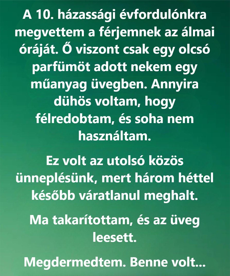 A tizedik házassági évfordulónkra valami igazán különlegeset akartam adni a férjemnek. Hónapokon át félretettem a pénzt titokban, hogy megvehessem neki azt az órát, amelyet már évek óta csodált.