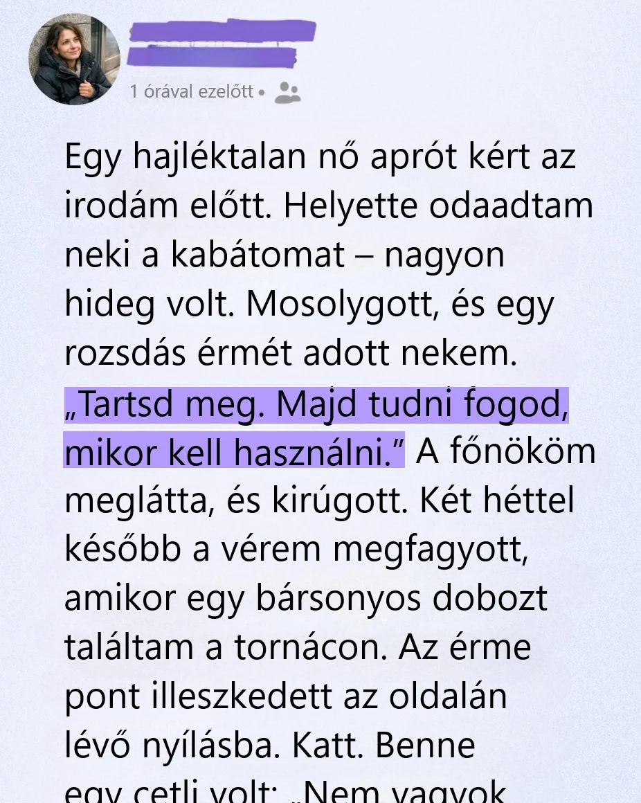 „Sajnálom” mondtam reflexből, és már léptem volna tovább. Aztán megállított valami. Talán az, hogy remegett a keze. Talán a vékony pulóver, a kesztyű hiánya, a kabát hiánya. Vagy a tekintete, nyugodt volt és figyelő, mintha nem kéregetne, hanem nézné az embereket.