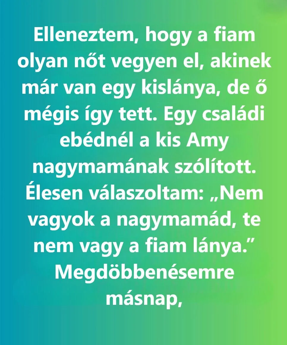 Csak egy családi ebéd volt.A nap besütött az asztalra, a tányérok halkan koccantak, mindenki lazán beszélgetett és nevetett. Semmi különös nem történt, egészen addig, amíg a kis MaAmy fel nem nézett rám a nagy, bizalommal teli szemével, és azt nem mondta:
