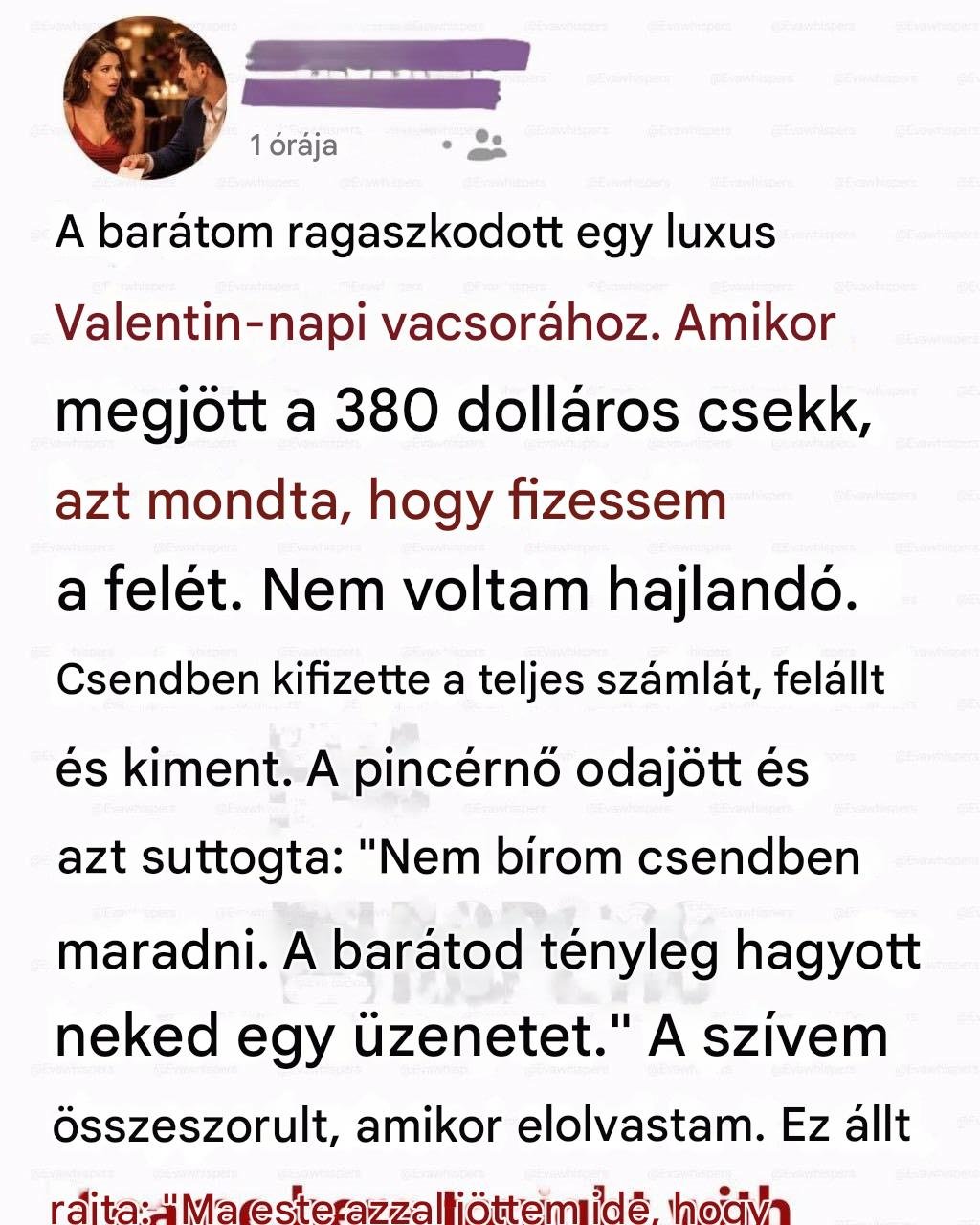 Néha a kapcsolat legfeltáróbb pillanatai hétköznapi helyzetekké álcázva érkeznek. Egy nő számára az életének legromantikusabb estéjének kellett volna lennie, az lett az a pillanat, amikor felfedezett egy igazságot, ami mindent megváltoztat.