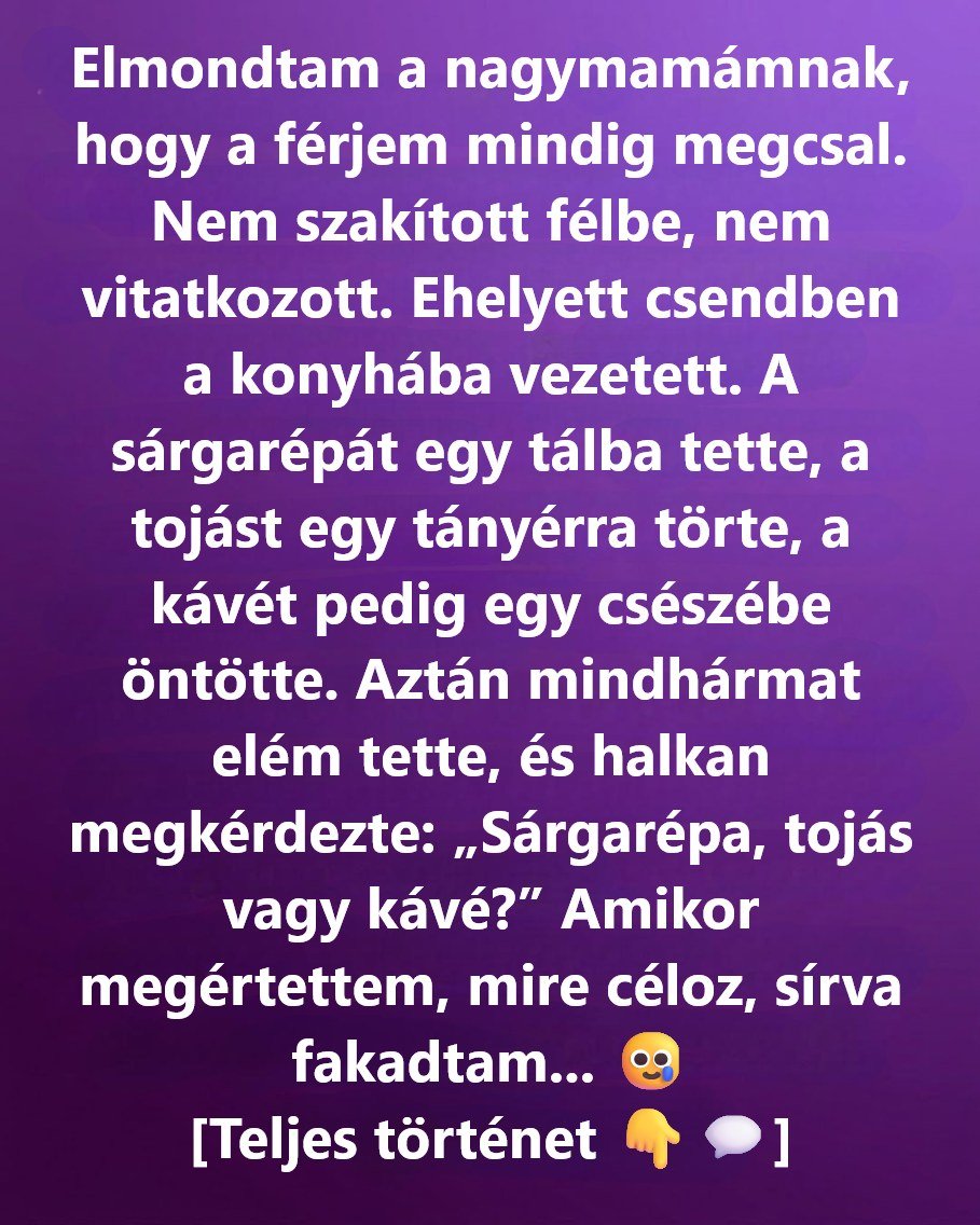 Elmondtam a nagymamámnak, hogy megcsalt a férjem, ő pedig csak ennyit kérdezett: „Répa, tojás, vagy kávé?”