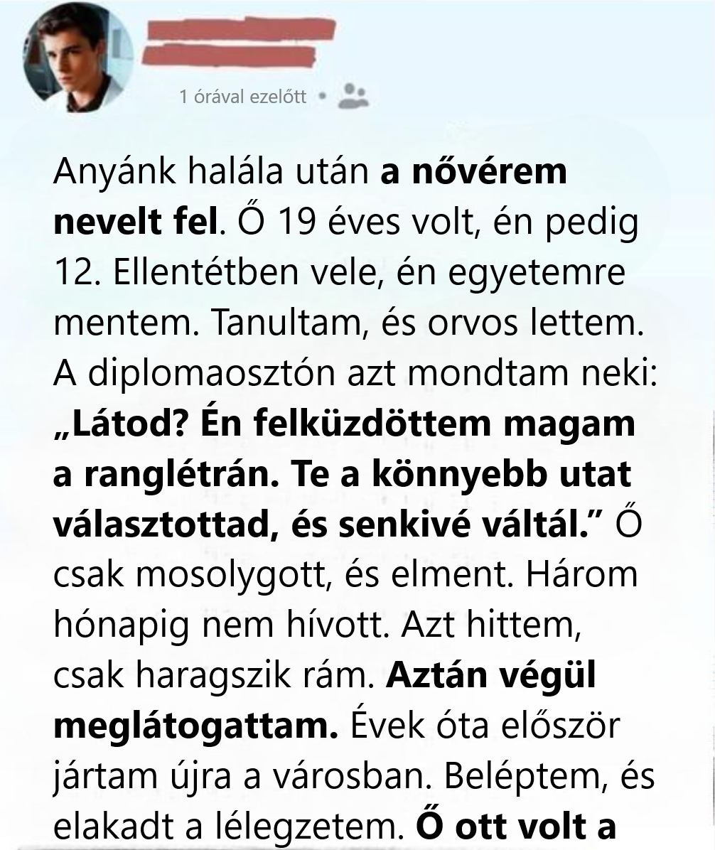 Attól a naptól kezdve már nem egyszerűen a nővérem volt, hanem az egész világom. Szó nélkül otthagyta a főiskolát, és két munkát vállalt. Megtanulta, hogyan elég egyetlen bevásárlás egész hétre. Azt is megtanulta, hogyan mosolyogjon úgy, hogy még én is elhiggyem, amikor azt mondta: „Minden rendben lesz.”