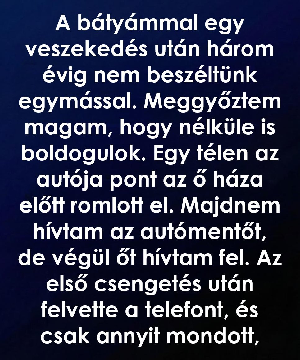 Elég közel voltunk ahhoz, hogy tisztán emlékezzünk a másikra, és elég messze ahhoz, hogy úgy tegyünk, mintha nem számítana. A szakításunk nem volt hangos. Nem volt kiabálás, nem voltak nagy jelenetek. Csak egy félresiklott beszélgetés, pár túl éles mondat, aztán egy csend, ami lassan megszilárdult köztünk. A büszkeség pedig elvégezte a munkát. Azt hittem, hogy ha kizárom őt, az önbecsülés. Azt mondogattam magamnak, hogy a családi kötelék sem ment fel senkit a fájdalom alól. Idővel a hiánya már nem tűnt furcsának. Legalábbis ezt ismételgettem.