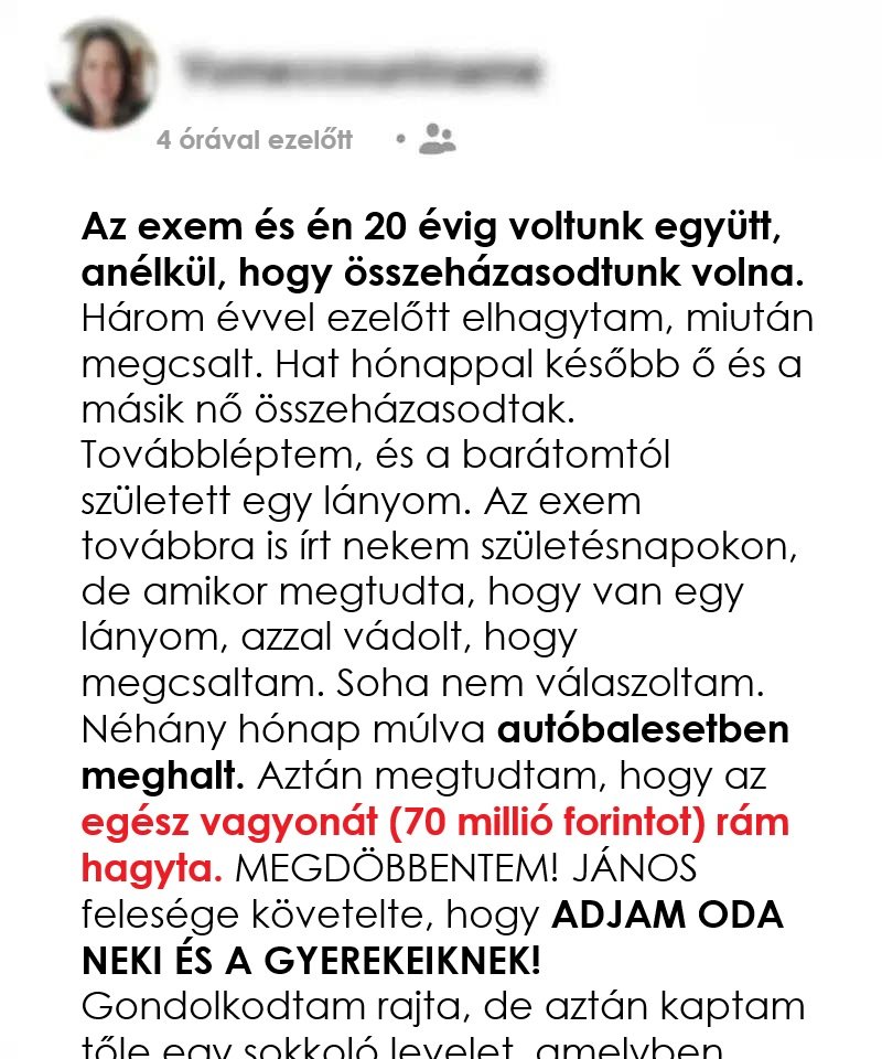 Ő pár hónap múlva újranősült, én pedig továbbléptem, és találtam egy társat, aki nyugalmat és örömöt hozott az életembe.