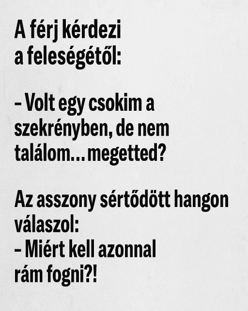 – Volt egy csokim a szekrényben, de nem találom… megetted?